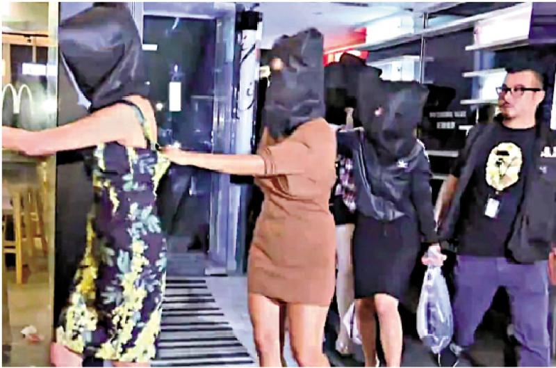 圖:西九龍警方進行「天網」行動,拘捕46名男女,包括14名泰國妓女/電視圖片