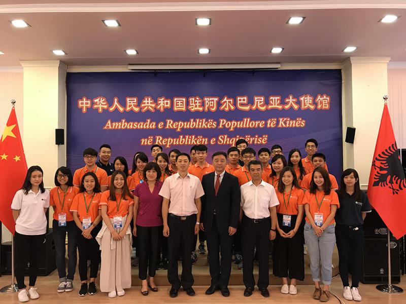 未來之星同學會執行主席、本次交流團團長姜亞兵,在致辭時回憶了去年「未來之星」首次前來阿爾巴尼亞時,得到了中國駐阿大使姜瑜的積極支持,感謝她對交流團各項活動提供的諸多便利。姜團長感謝中國駐阿使館為同學們提供了如此難得的機會,「在離香港萬里之遙的地方,又走進了在阿爾巴尼亞─我們自己的『家』。」在回顧了「海內存知己,天涯若比鄰」的中阿傳統友誼之後,姜團長鼓勵同學們好好利用此次難得的實地考察機會,在「一帶一路」這個歷史性的新機遇下,找到「國家所需」和「自己所長」。