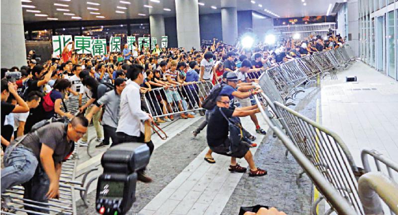 圖:當日示威者強行移走在立會外的鐵馬 資料圖片