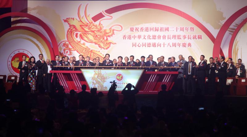 香港中華文化總會「慶祝香港回歸祖國二十周年暨會長理監事長就職 同心同德邁向十八周年慶典」昨晚於灣仔會展中心舉行,中聯辦主任張曉明等主禮,逾千名政商界名人聚首一堂。全國政協教科文衛體委員會副主任、香港中華文化總會會長高敬德致辭時稱,回顧文化總會17年來發展,在「文化促進香港人心回歸」、「社會和諧」、「長期穩定繁榮」、「參政議政能力」以及「香港與內地和國際友好交往」五方面取得豐碩成果;未來將繼續發揮總會優勢,把文化促進人心回歸與社會和諧的工作做到社會、社區、民眾和青少年中去。