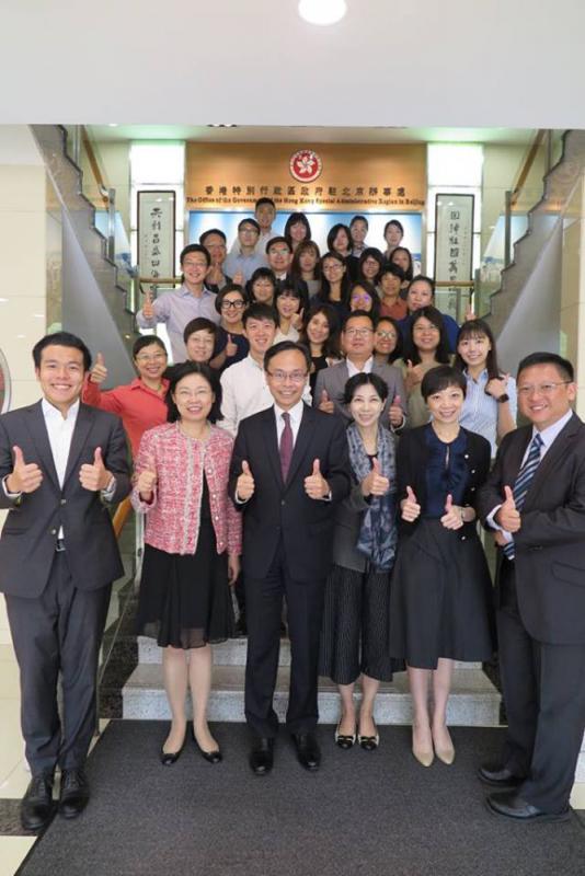 圖:聶德權(前排左三)與一眾駐京辦同事合照 網上圖片