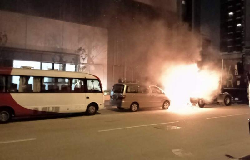 圖:九龍灣自焚貨櫃車車頭火光熊熊\網上圖片