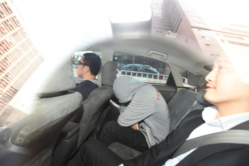 圖:康宏環球控股有限公司捲入「廉政風暴」。一名女子在廉署人員陪同下,乘車離開廉署總部,全程一直低頭