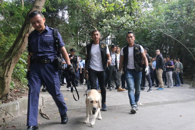 :大批警員帶同警犬前往懷疑爆竊匪匿藏的山頭搜查
