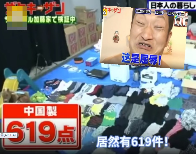 大公文匯全媒體綜合報道:中國製造、世界工廠果然名不虛傳。日本有電視節目邀請一名男子測試,家中只要是「中國製造」的東西就直接清走,結果令人大吃一驚,該男子被清理只剩內褲,引起網民討論。