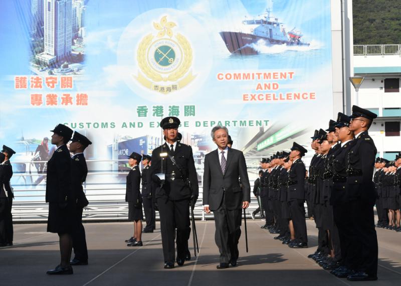公務員事務局局長羅智光(圖中)昨日前往香港警察學院參觀,了解警務人員的專業培訓工作和正在學院參加領導才能促進課程的政務主任的培訓情況。他與香港警察學院院長劉賜蕙會面,了解學院的運作和培訓設施,其後觀看有關突發事件處理的示範和學員的步操練習,並參觀學院的設施,包括戰術訓練大樓和學警宿舍。