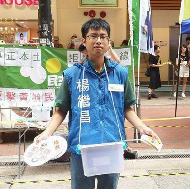 今年36歲的楊繼昌活躍於反對派社運圈子,2010年曾任職社民連,2011年和2015年兩度參加區議會選舉均落敗。2015年12月,楊繼昌成立所謂香港的「民主進步黨」。