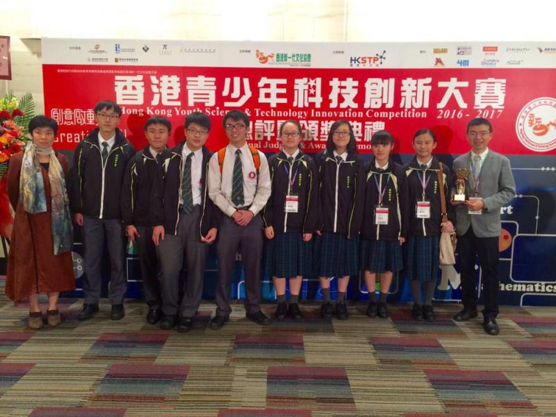 圖:林伯強與順聯會鄭裕彤中學師生在香港青少年科技創新大賽戰績輝煌