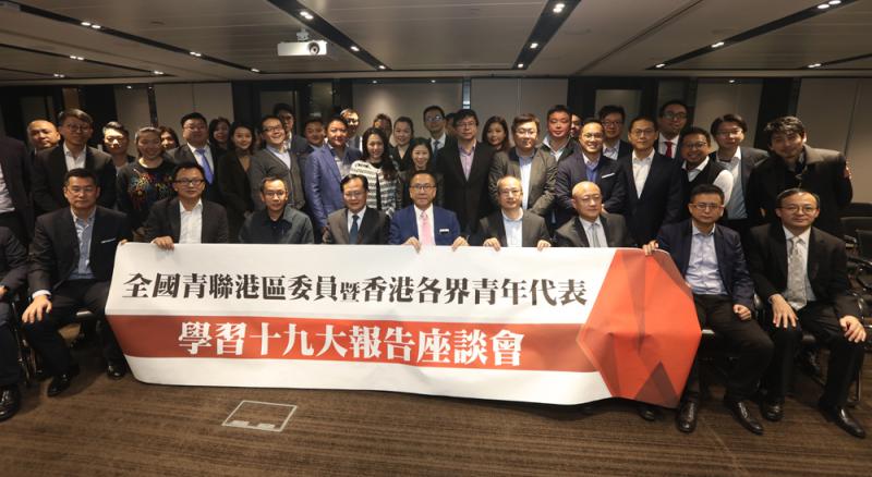 圖:「全國青聯港區委員暨香港各界青年代表學習十九大報告座談會」昨日舉行