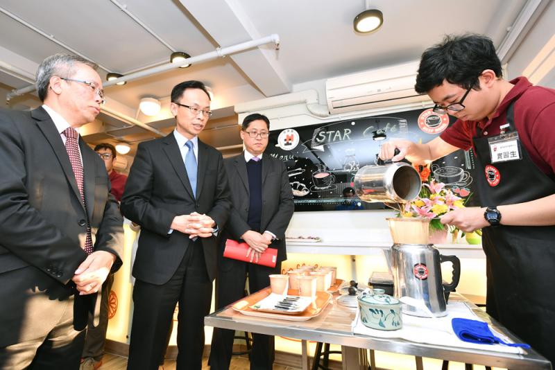 圖:聶德權(左)到訪STAR Café了解自閉症人士職業培訓