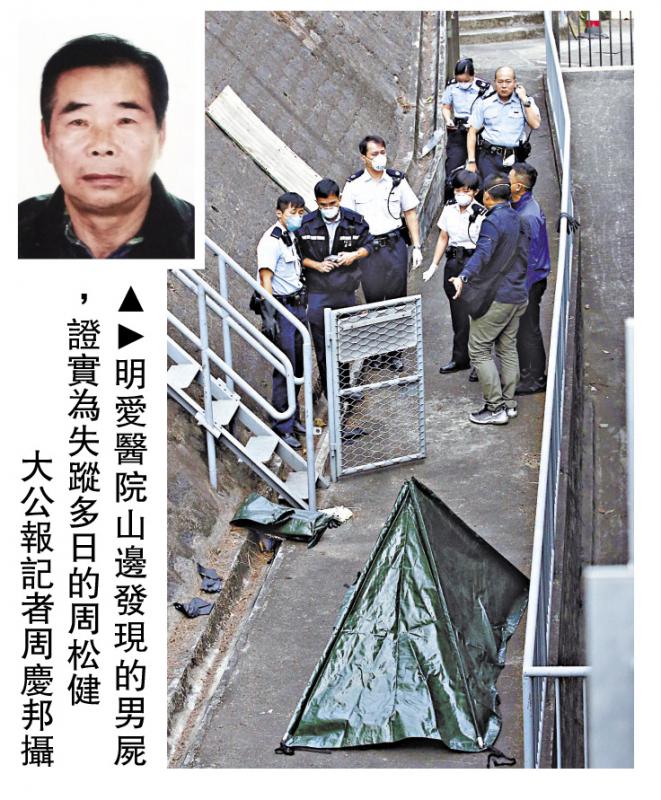 圖:明愛醫院山邊發現的男屍,證實為失蹤多日的周松健/大公報記者周慶邦攝