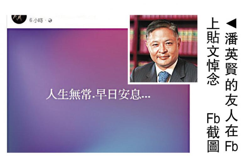 圖:潘英賢的友人在Fb上貼文悼念/Fb截圖