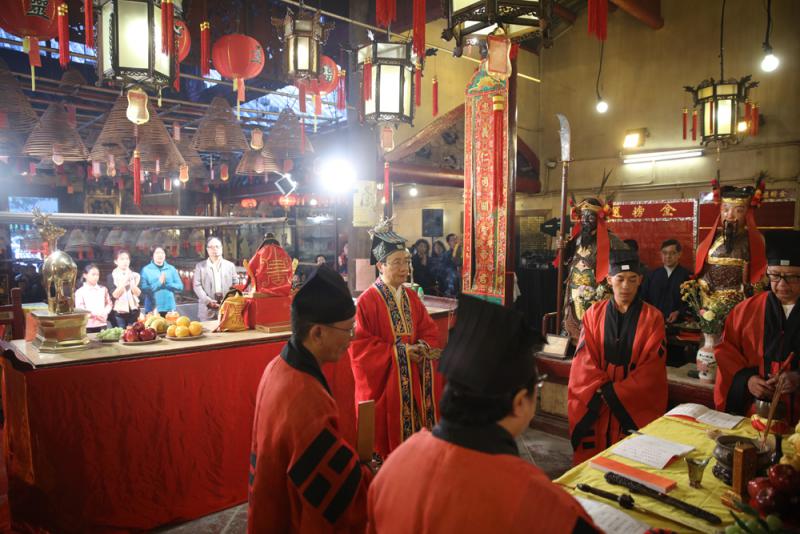 東華三院文武廟170周年紀念活動中,最後一項法會「文昌啟智禮」昨午舉行。青松觀道長主持功德科儀,燃點「文昌四寶燈」及開啟「文昌青雲路」,祝願善信工作如意,步步高陞;莘莘學子聰明勤奮,學業有成,近400名男女善信參與。