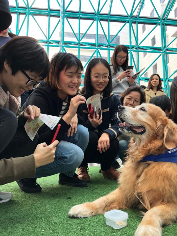 踏入12月,大學生要考試喇,壓力大了不少。香港大學圖書館早前推出治療犬試驗計劃,安排古代牧羊犬Jasper與學生約會,為學生減壓。香港科技大學學生事務處亦推出一系列活動,包括邀請亞洲動物基金派出「狗醫生」─金毛尋回犬Oscar與同學互動。學生毋須預約,只需於本周四及五(13及14日),在午飯時分,到校園內的「加油站」(吳家瑋學術廊)與狗狗來一個愛的抱抱。