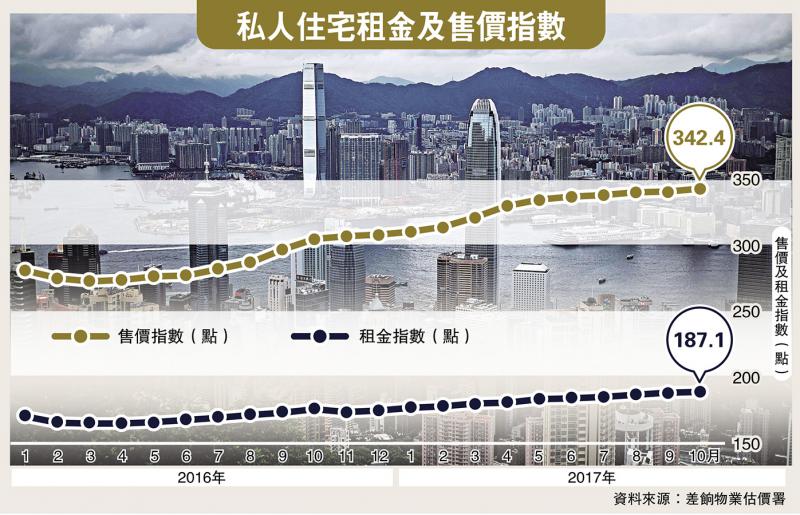樓價升不停,今年累漲逾10%後,各代理行對明年樓市持續樂觀。戴德梁行指出,受到股市財富效應、低失業率及房屋供不應求等因素支持,明年上半年樓價料升10%。仲量聯行更樂觀,估計明年樓價最多可漲20%,400萬元以下上車盤進一步減少,未來600萬元才是細價樓。/大公報記者 林惠芳