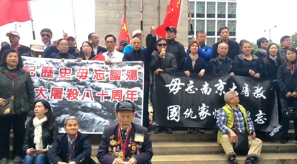 遊行團體悼念南京大屠殺死難者,並要求日本道歉(視頻截圖)
