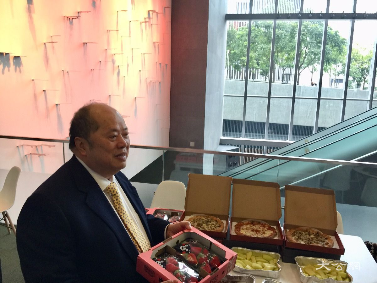 大公網12月13日訊 記者馮瀚林報道:立法會上星期展開議事規則攻防戰,連日來一眾建制派議員嚴陣以待,而一眾行家亦緊貼現場情況,為大家報道立法會最新情況。經民聯副主席張華峰(肥老闆)今日為了答謝行家,專程買了一些食品慰勞大家,包括接近十個薄餅、一堆巴馬火腿、幾盒蜜瓜及草莓。肥老闆表示,大家最近幾天都辛苦了,所以希望大家能夠快樂一點。結果不消十分鐘,幾乎所有食品都紛紛吃光。