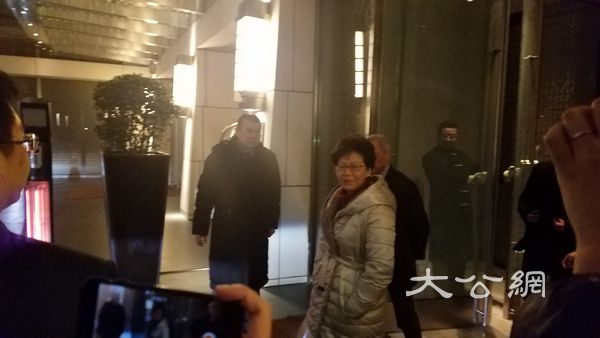 林鄭月娥在丈夫林兆波、香港政制及內地事務局局長聶德權等人陪同下,晚上7時許抵達下榻的北京金融街麗思卡爾頓酒店。林鄭在酒店逗留十多分鐘後外出,見記者在寒冷天氣下守候,主動慰問道:「你們冷不冷呀?」