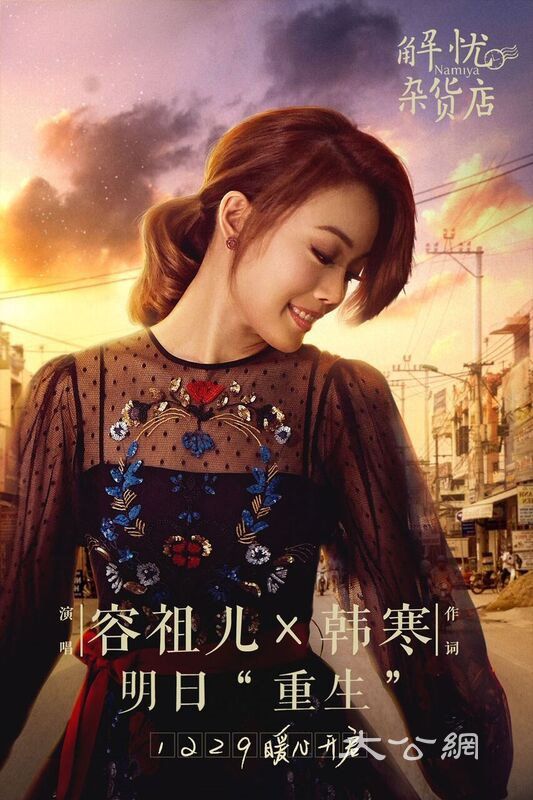 大公網12月14日訊(記者溫頴芝) 韓寒擔任藝術指導的電影《解憂雜貨店》,將於2017年12月29日內地上映,容祖兒演唱的主題曲MV《重生》近日率先曝光。 今次是Joey 首次為內地電影演唱主題曲,Joey坦言:「第一次聽到《重生》demo時就覺得首歌有種傾訴的感覺,好適合現在的自己來唱,要有經歷才能領悟歌曲中意思。」