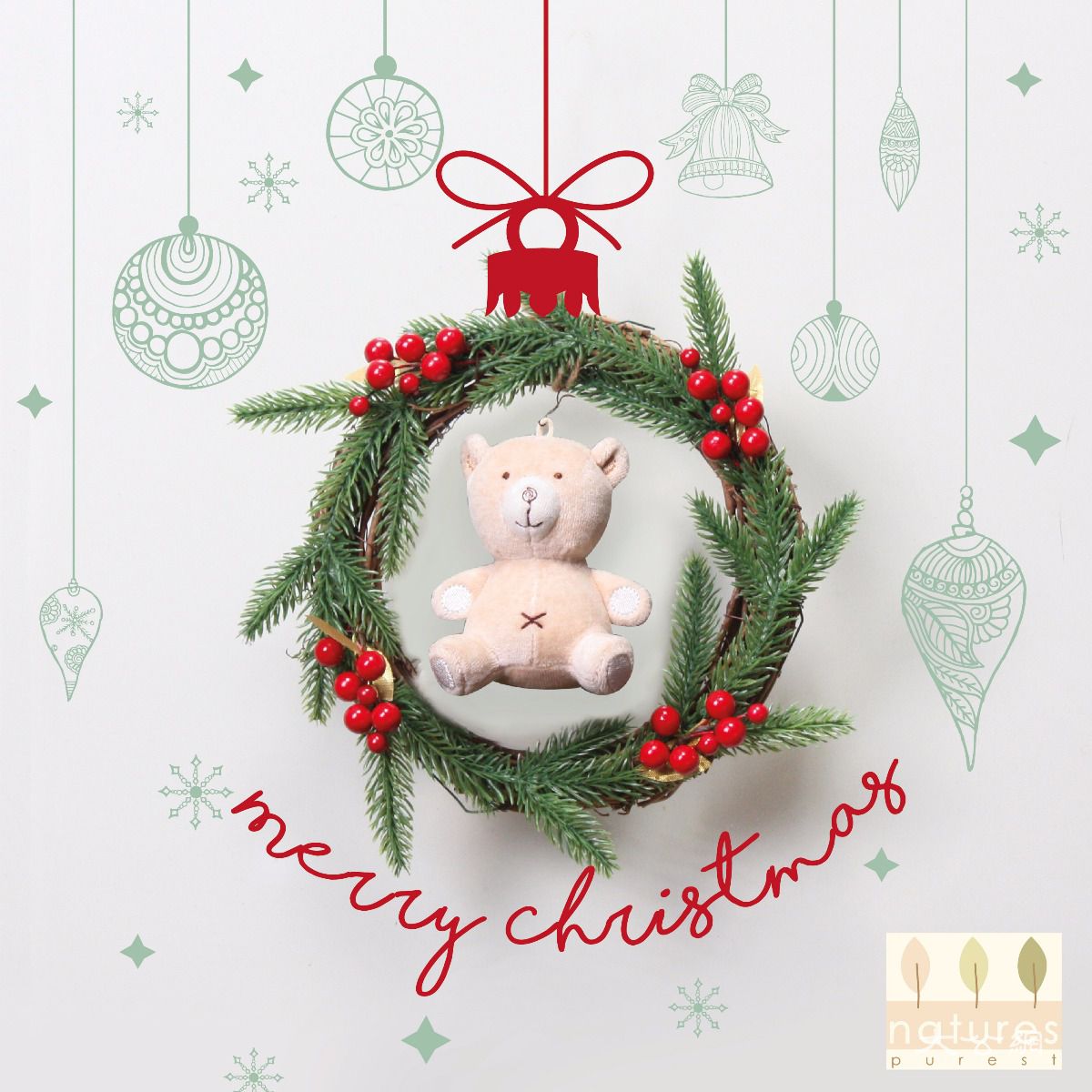 natures purest抱抱熊聖誕花圈