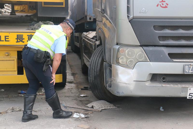 圖:慘被夾死司機送院後不治,警方到意外停車場搜證
