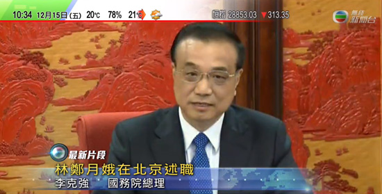 李克強聽取林鄭月娥述職,讚其上任以來積極施政(電視截圖)