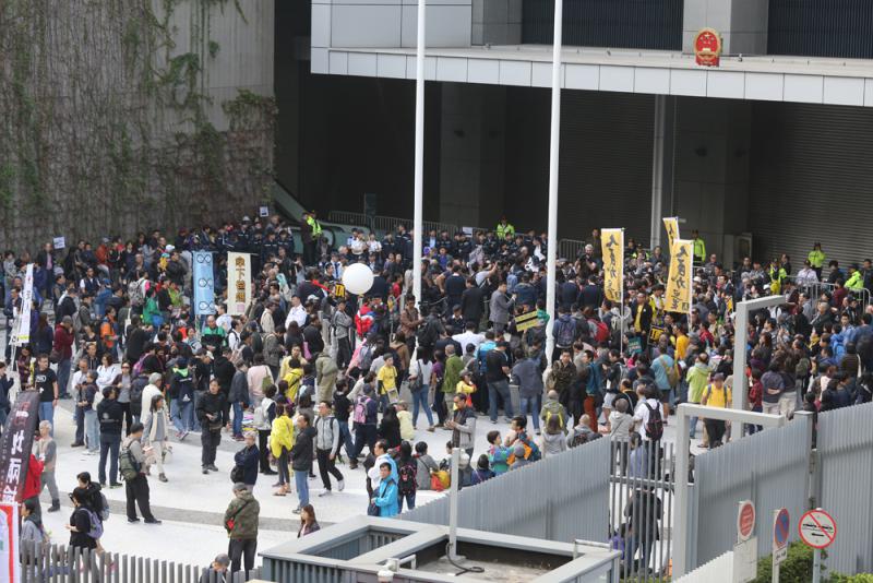 ▲遊行人士獲准在政總東翼前地集會,卻得寸進尺、大演衝擊騷