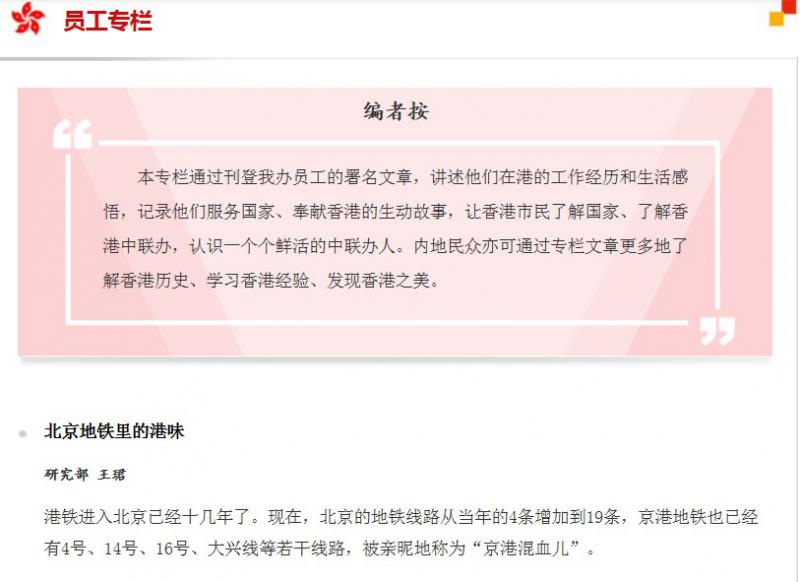 中聯辦為了加深市民對它的了解,今日在官網新增員工專欄,由職員實名寫稿,講述工作經歷和生活感悟。