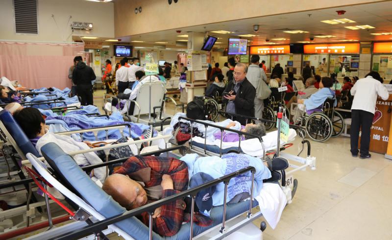 圖:公立醫院急症室求診數字再上升,其中伊利沙伯醫院急症室昨日病人等候時間一度超過八小時