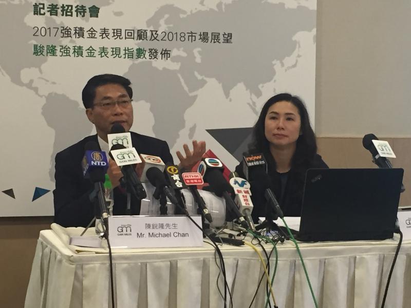 駿隆集團常務董事陳銳隆表示,港股市場基調良好,在多項利好因素支持下,預計2018年首季港股走勢將持續向好,反觀利好美股消息已被市場消化,加上美股股值偏高,美國稅改通過將加重美國財赤壓力,相對回調空間較大。他預期,恒指今年可望高見32000點至35000點,料今年強積金可望取得5%回報。面對市場波動,他提醒投資者需留意市況調整,建議風險承受能力較高的投資者可首選香港及亞洲(日本除外)股票基金,低風險投資者則可考慮買入人民幣貨幣市場基金,獲取較佳回報。