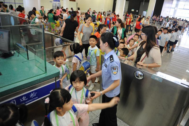 圖:深圳邊檢引導跨境學童經專用通道辦理出境手續\大公報記者石華攝