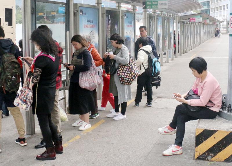 圖:發生車禍的大欖隧道轉車站,昨日仍有不少人做「低頭族」\大公報記者黃俊華攝