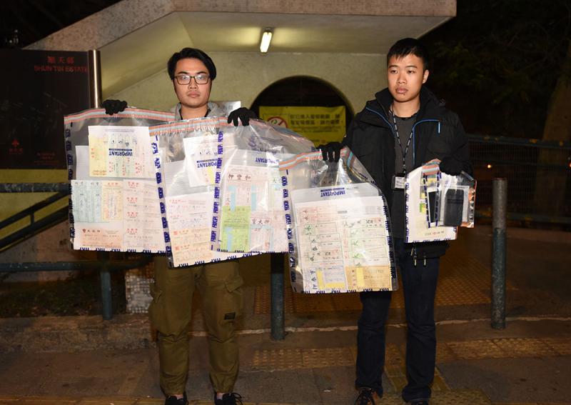 圖:警方在被捕男子寓所搜出大批當票