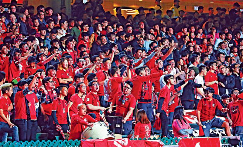 圖:前日省港杯賽事現場「觀眾」有組織地狂噓及向廣東球員舉中指