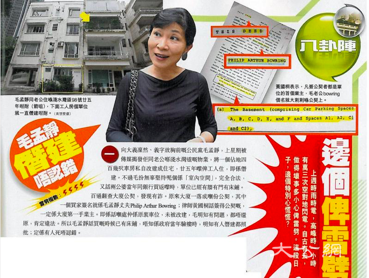 1. 毛孟靜,將車位僭建成住宅,竟然3年仍未處理