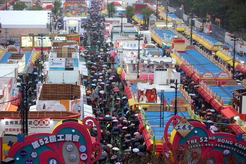 圖:第52屆工展會踏入尾聲。雖然昨日下雨影響人流,但整體生意仍然「大旺場」\大公報記者麥潤田攝