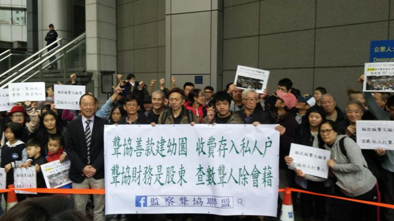 圖:一批聾協前會員昨日報警,指控諮委會主席麥海華成立與「聾協」名稱相似的公司,將聾協資產及職員轉移
