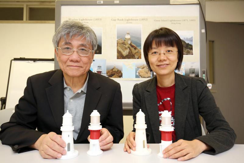 圖:潘新華博士與鄧穎博士近年帶領學生了解燈塔古蹟,並以3D打印迷你燈塔,向年輕人解碼香港近代史\大公報記者麥潤田攝