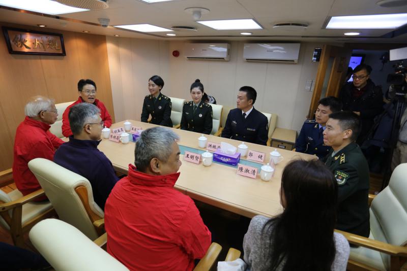 座談會在解放軍海軍欽州號護衛艦上舉行,出席的官兵代表包括海軍、航空兵和女子特種兵。座談會前,欽州艦艦長親自在甲板上向員工代表介紹軍艦裝備和性能,並回答提問。