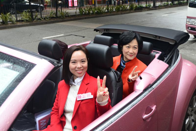 圖:新民黨昨日於港島區舉辦大型花車巡遊,葉太話要與市民風雨同路
