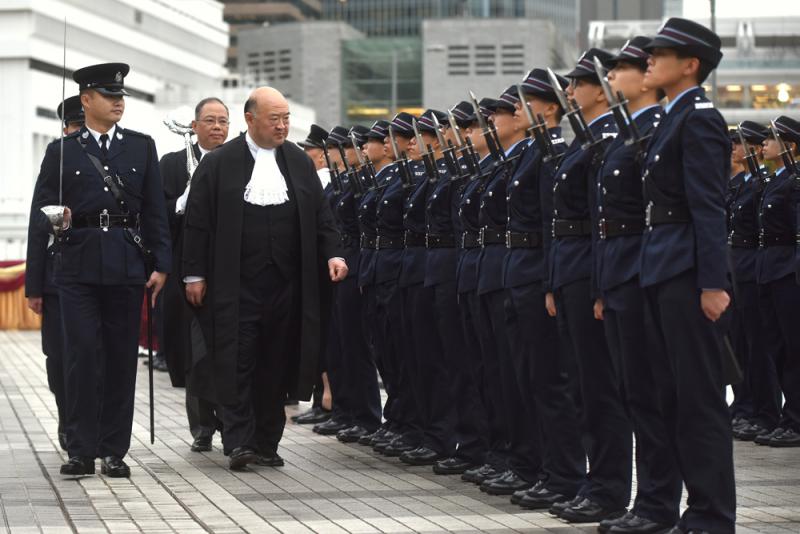 圖:終審法院首席法官馬道立昨主持2018年法律年度開啟典禮,並於愛丁堡廣場檢閱香港警察儀仗隊