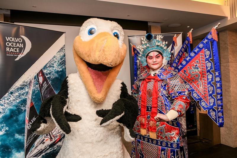 圖:大會吉祥物Wisdom(左)與粵劇打扮的表演者將會在帆船嘉年華跟大家見面