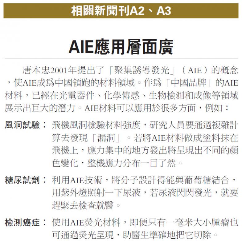 【大公報訊】記者湯淩琰報道:香港科技大學唐本忠教授及其研究團隊,憑藉「聚集誘導發光」,顛覆了傳統發光材料的理念,獲得了2017年度「國家自然科學獎」一等獎,是繼2006年香港大學化學系支志明教授之後,時隔11年再次有香港科學家獲此殊榮。不少香港學者認為,今次獲獎顯示國家支持香港的科技發展,是對本港科研的「巨大鼓舞」。
