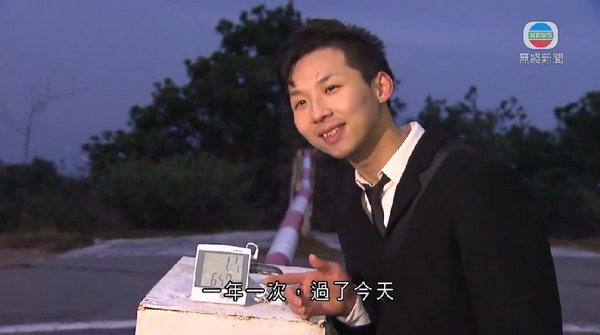 市民鄧先生僅穿薄外套,即興上山看結霜(電視截圖)