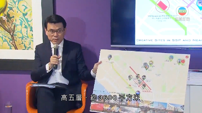 邱騰華介紹,設計及時裝基地將設立於深水埗通州街,佔地約3600平方米(電視截圖)