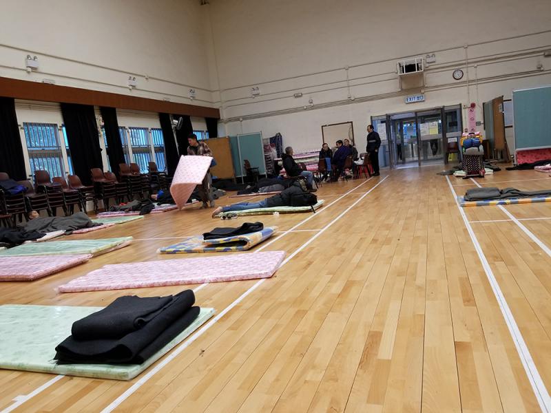 圖:深水埗避寒中心內,下午四時許有逾十名露宿者午睡中,但部分人表示怕被「偷嘢」不敢熟睡