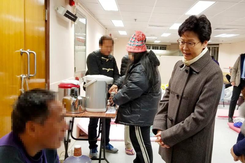 林鄭訪避寒中心送暖