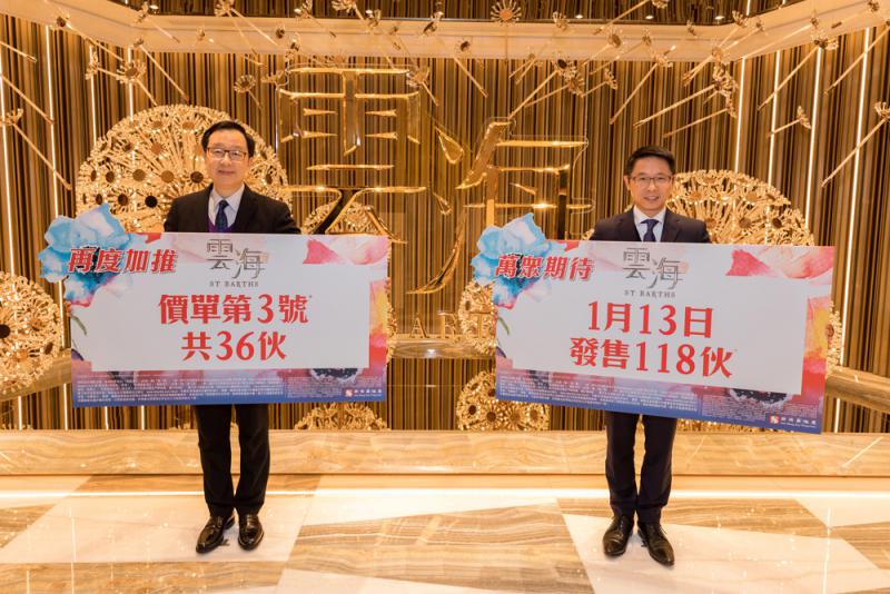 新地副董事總經理雷霆表示,雲海收票反應熱烈,加推全新3號價單涉及36伙,折實平均呎價17773元,由於涉及特色單位,呎價較首兩張價單為高,強調屬原價加推,落實周六(13日)發售118伙。