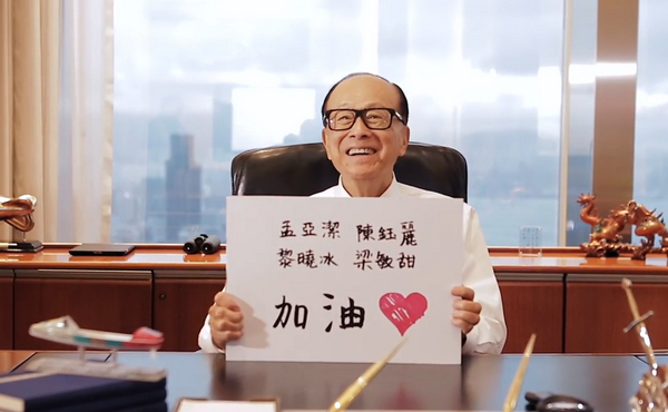 李嘉誠舉牌為4女將「打call」(視頻截圖)