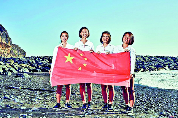 汕頭大學4名學生孟亞潔、陳鈺麗、黎曉冰和梁敏甜組成划艇隊「功夫茶茶」(李嘉誠基金會圖)